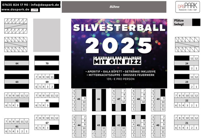 Kartenvorverkauf und Reservierungen finden direkt bei uns im DasPark statt oder Sie wenden sich per Mail an uns.